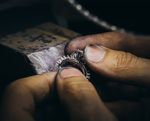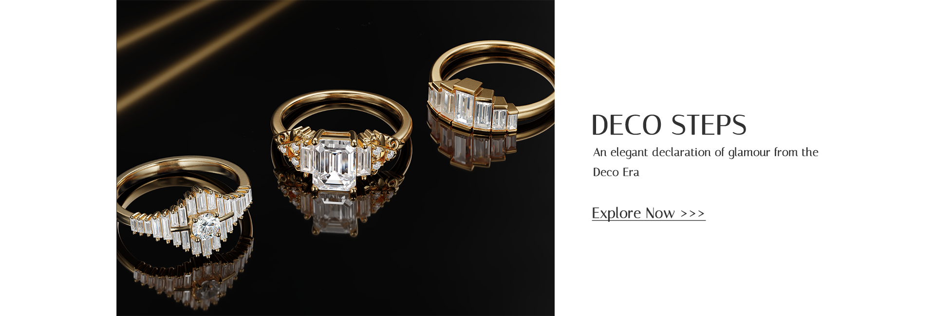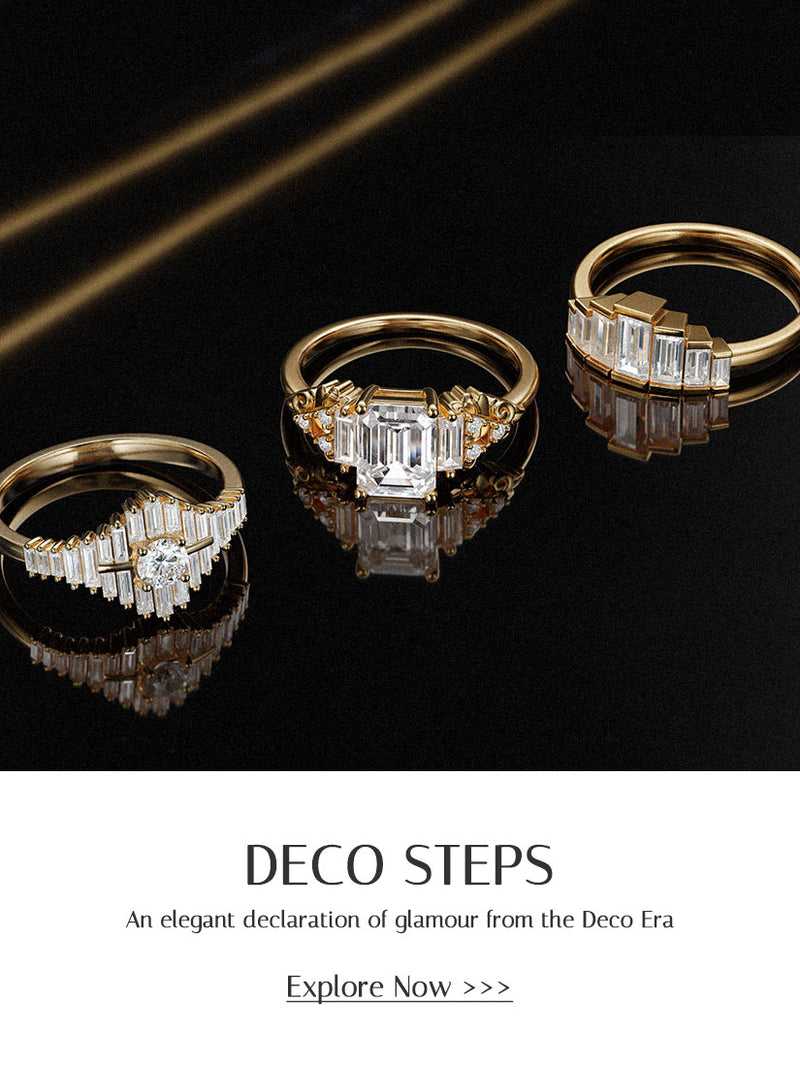 Art Deco Lab Diamond Gold Wedding Band Couples