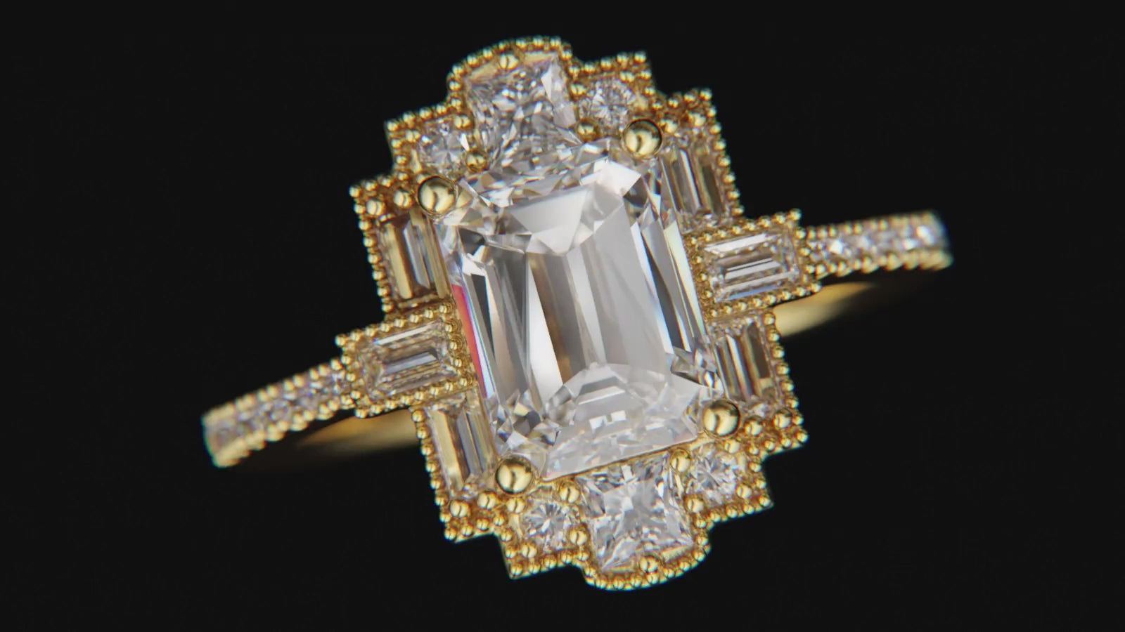 Art Deco Emerald Cut Lab Emerald Engagement Ring