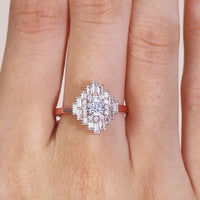Art Deco Lab Diamond Baguette Halo Mosaic Ring
