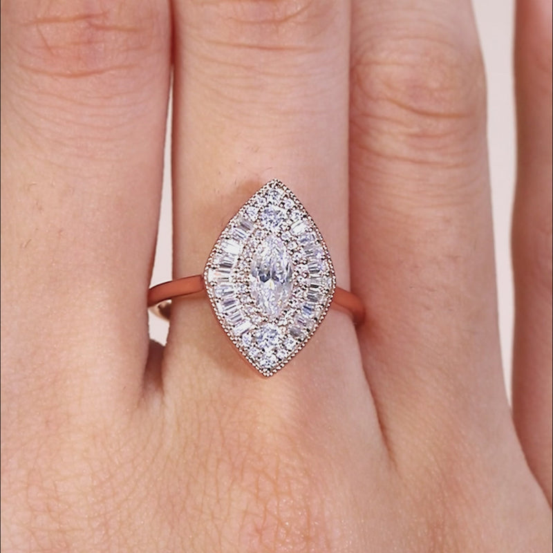 Marquise Mosaic Lab Diamond Baguette Halo Ring