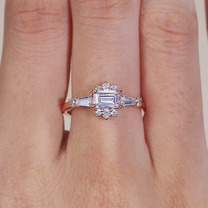 Art Deco Emerald Cut Lab Grown Diamond Cluster Engagement Ring