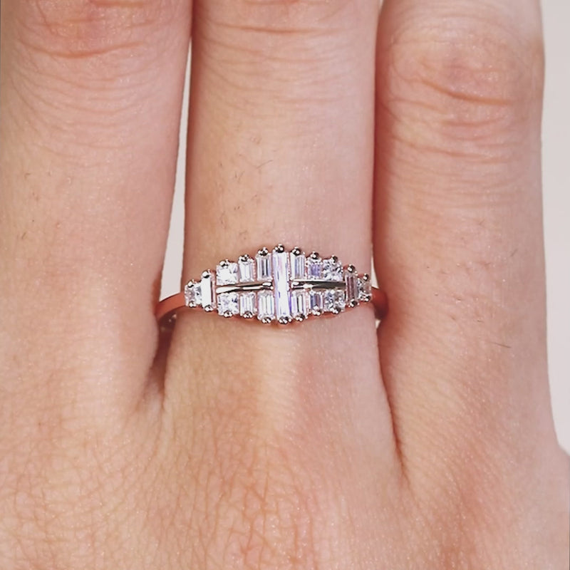 Art Deco Baguette Shape CZ Rose Gold Cluster Wedding Band