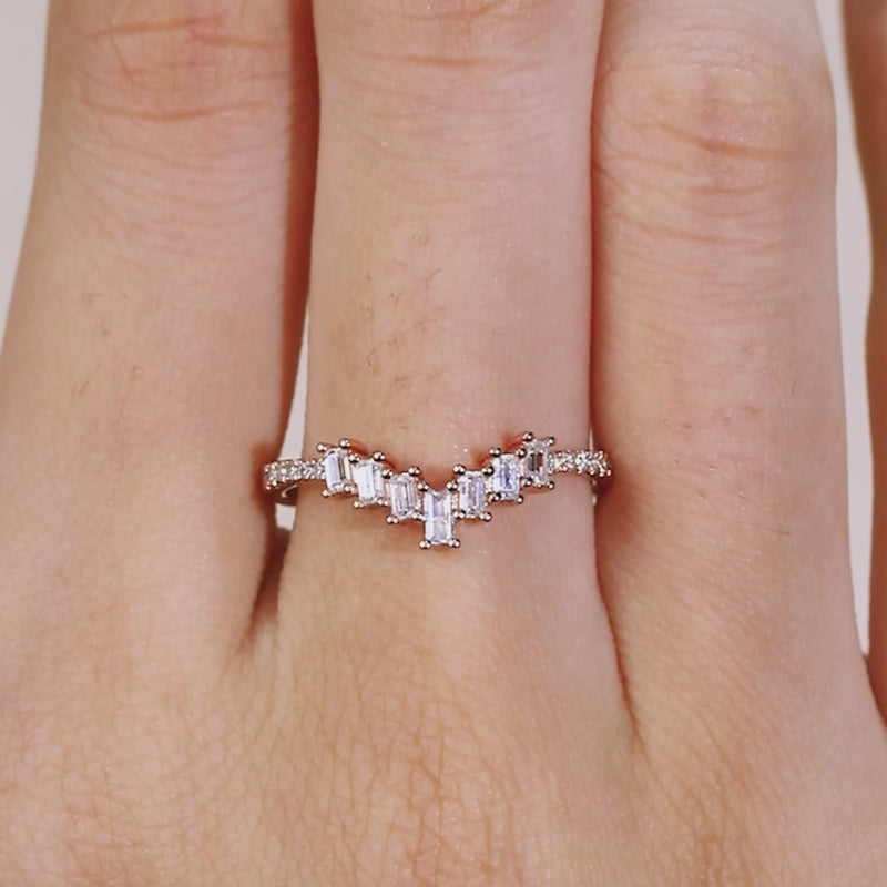 Art deco Diamond Pave Curved Wedding Band Rose Gold