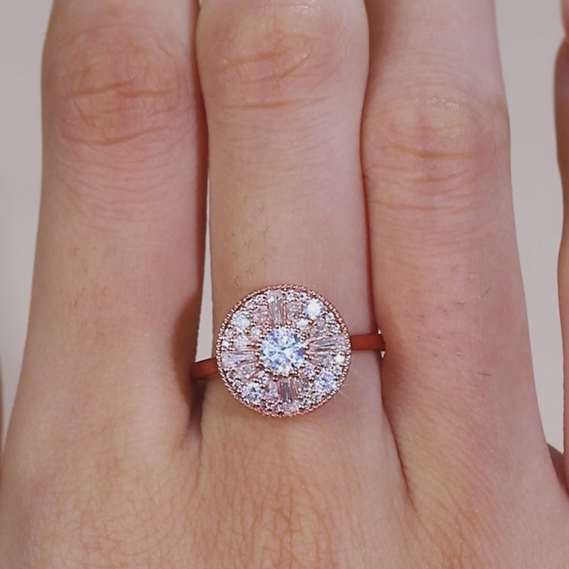 Round Brilliant Cut Lab Diamond Mosaic Art Deco Ring