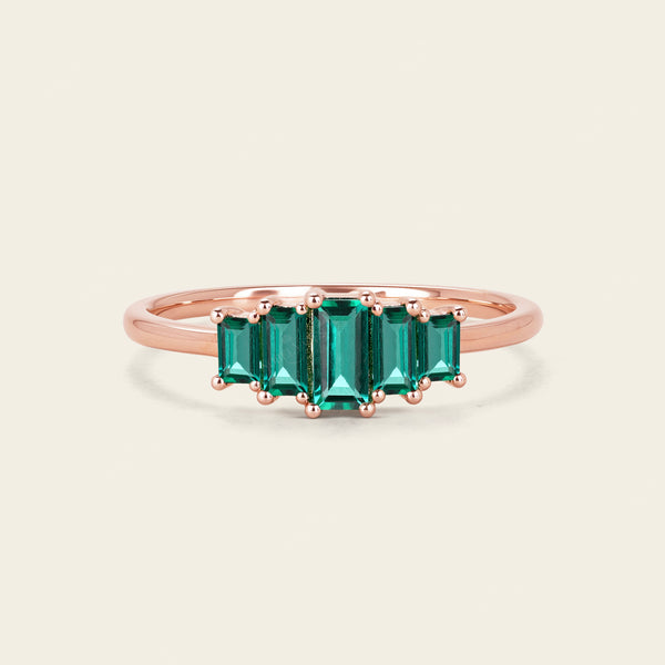 Art Deco Baguette Lab Emerald Rose Gold Five Stone Wedding Band