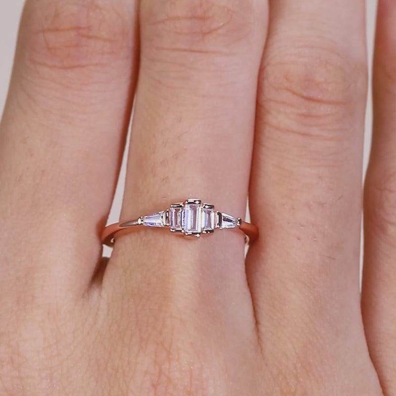 Art Deco Lab Grown Diamond Baguette Engagement Ring Bezel Setting