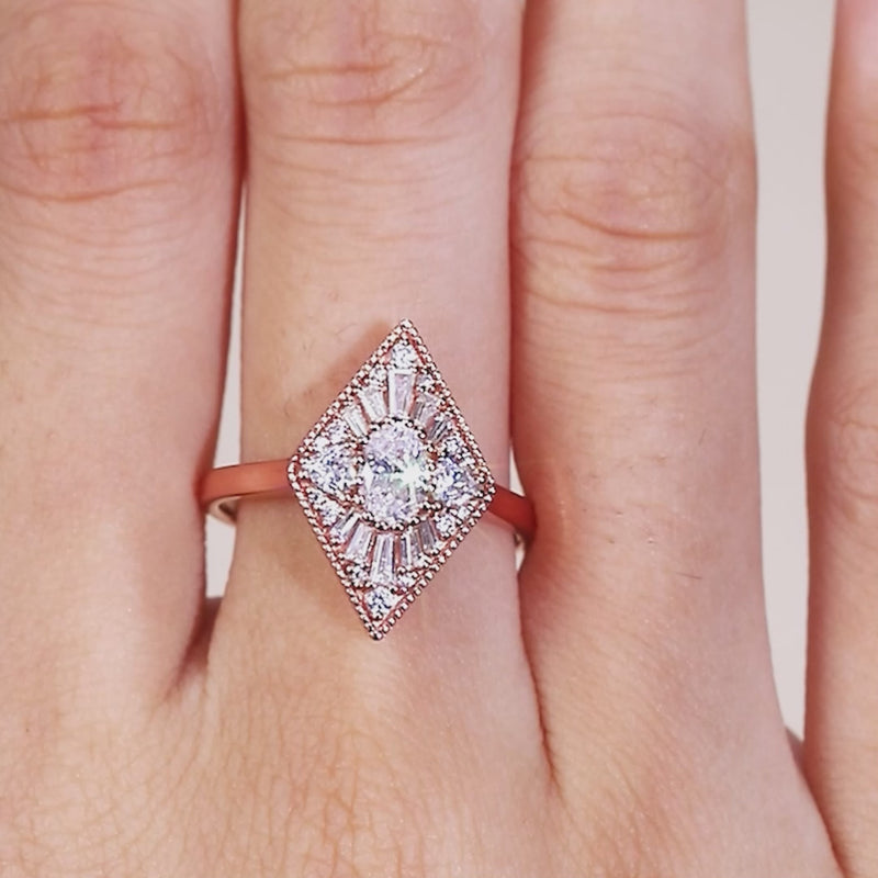 Kite Shape Art Deco Oval Lab Diamond Mosaic Ring